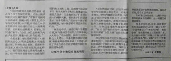 我校一直坚持“分层走班”教学改革,努力办适合的教育,一直坚持选择、实践、再选择、再实践,让教育适合学生,经过反复地尝试直至找到“适合的教育”,用先行先试的实际行动诠释了“适合的教育才是最好的教育”这样一个朴素的道理。