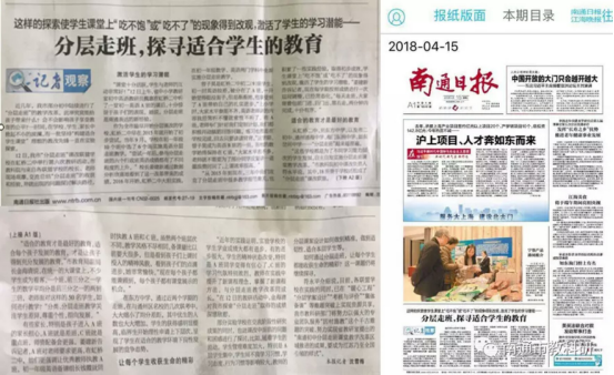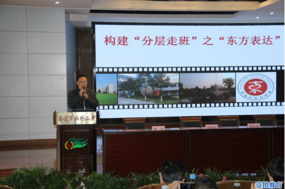 近日,南通市第六次“分层走班”课改联盟学校教研活动在虹桥二中举行。南通市东方中学党总支书记、校长戴继华受南通市教育科学研究院的邀请,向南通市18所课改联盟学校做了《构建“分层走班”之“东方表达”》专题报告。戴校长的报告理念新、措施新,有较强的操作性和示范性,得到了省教研室领导和南通市教育局金海清副局长、市教育科学研究院陈杰院长的高度肯定。4月15日,《南通日报》对本次活动进行了专题报道,引发社会各界的广泛好评。