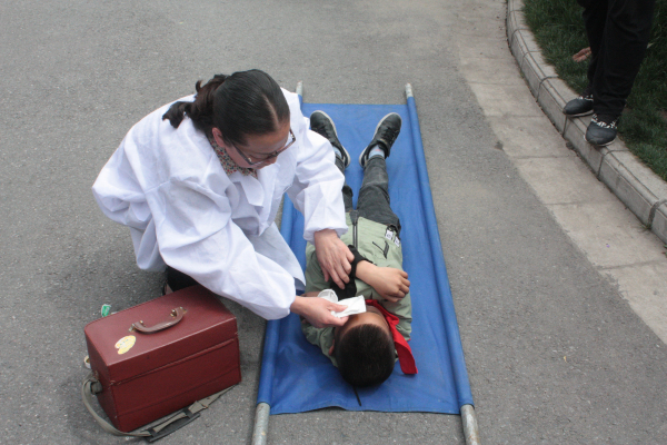上午10时,全体参与演练的人员各就各位。10时05分,现场指挥陆方冲主任作了演练活动动员并强调活动安全。演练开始,随着“地震音频”警报的响起,班主任下达“躲避”命令,同学们迅速躲避在课桌底下或周围,双手紧抱头。10时16分,“地震音频”警报解除,班主任下达“撤离”命令,学生按2列纵队有序撤离到指定的场地,按照规定动作在安全区科学避险,班主任及时清点人数后向安全指挥小组报告。由于部署周密,地震应急疏散演练圆满成功。