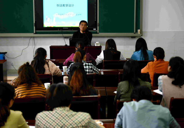 冒老师的讲座从三个方面对教学设计进行了解读:教学设计组成要件及其解读、教材重点内容梳理、具体内容设计。在整个讲座过程中,冒老师结合各年级的知识点,引用教学实例,帮助老师们对各阶段重难点进行梳理,他还以《分数的意义》、《加法的运算律》、《倍数和因数》、《圆的认识》、《角的认识》等课为例,从新知导入、问题探讨、练习层次等教学环节,与全体教师分享了他的设计与应用技巧。讲座的最后,冒老师还与我区青年教师进行了互动探讨,他对朱鑫娟、盛佳瑜两位老师就近期在基本功集训期间遇到的问题进行了答疑解惑。