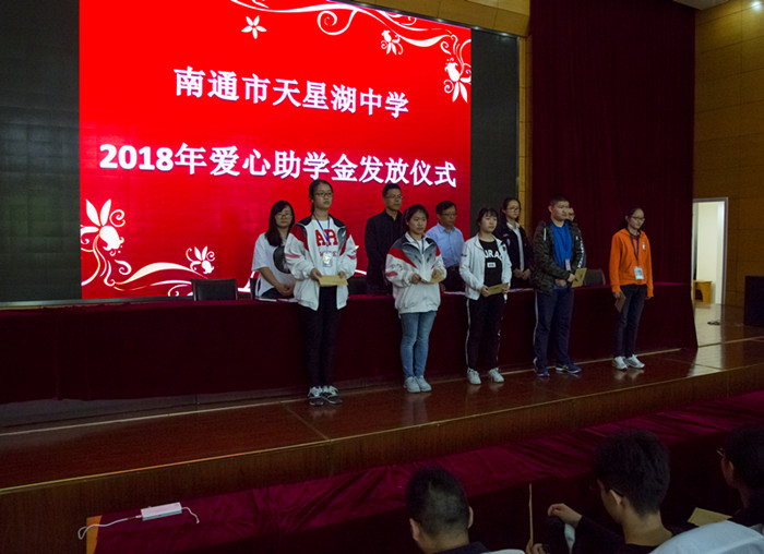 5月3日中午,南通市天星湖中学2018年爱心助学金发放仪式在学校滋兰楼报告厅进行。党委副书记、副校长朱卫东,党委办主任吴冬杰、团委副书记丁媛以及学生会主席团成员共同参与了此次仪式。