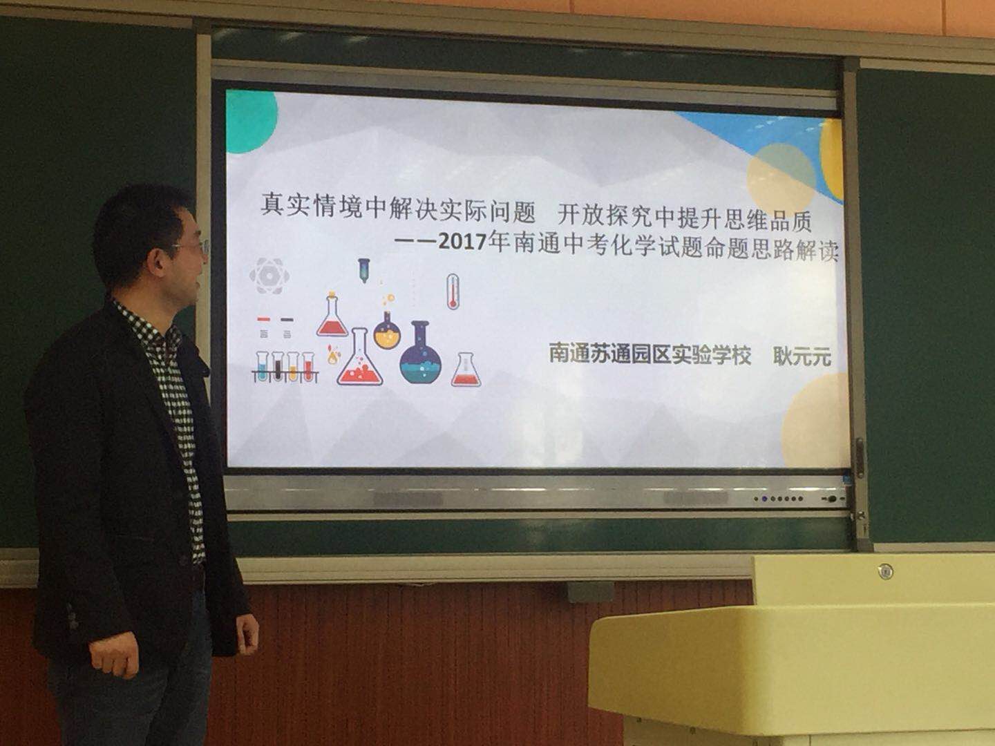 为总结2018年初三一模考试的得与失,进一步交流总结教学经验,提升初三二轮复习工作的有效性,5月10日,南通开发区初三化学一模质量分析暨复习研讨会在我校顺利举行。本次活动由区教师发展中心主办,南通苏通科技产业园区实验学校承办。东方中学、竹行中学、园区学校初中部的全体初三化学老师参加了本次活动。