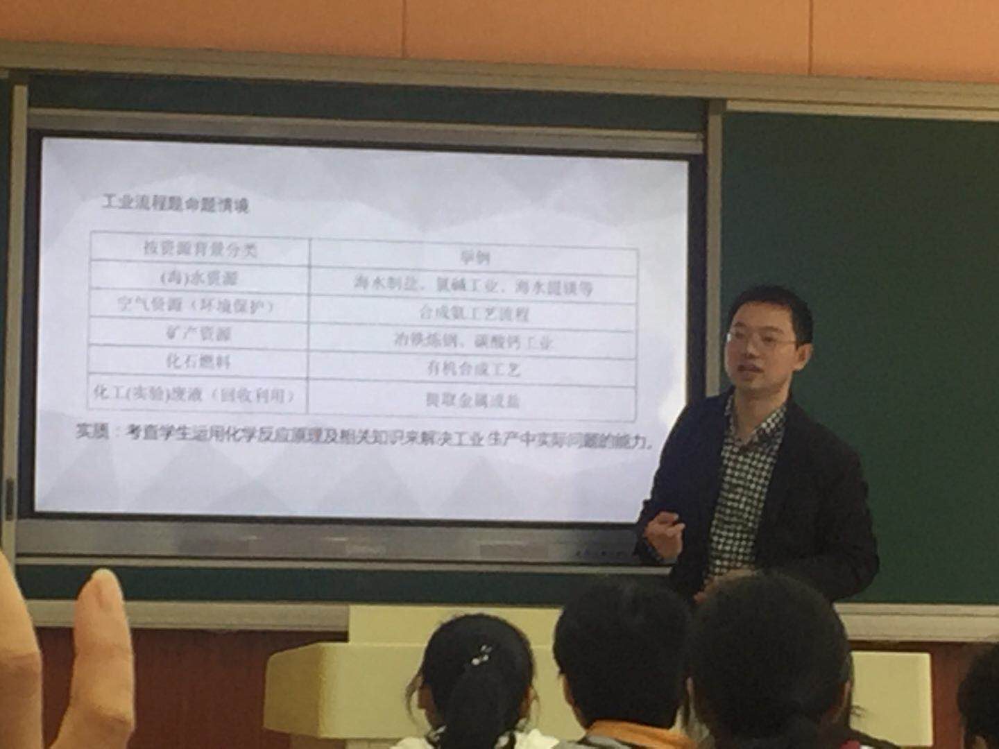 随后,耿老师作了题为《真实情境中解决实际问题,开放探究中提升思维品质》的专题报告。耿老师先从命题背景、命题思路、试题解析三个方面对2017年中考化学试卷进行了解读;再结合此次一模考试的具体数据对下一阶段的复习工作提出了五点建议。