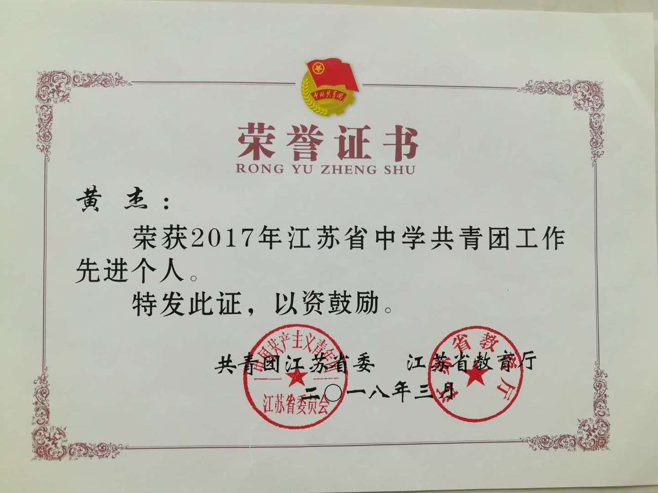 “2017年江苏省优秀中学共青团组织”荣誉称号