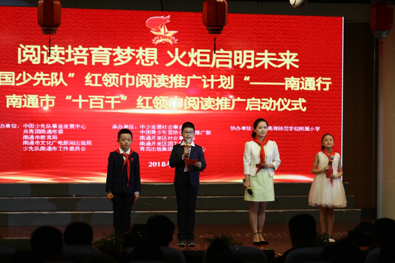 五月,百花争妍、万类竞绿。在这绚丽多姿的美好季节,南通市“十百千”红领巾阅读推广启动仪式在南通高等师范学校附属小学拉开帷幕。本次活动由中国少先队事业发展中心、共青团南通市委、南通市教育局、南通市文化广电新闻出版局、少先队南通市工作委员会主办,中少发展社会事业中心、中国青少年宫协会阅读推广部、南通开发区社会事业局、南通开发区团工委、青岛出版集团少儿期刊中心承办。