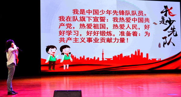 下午1:30,所有准备入队的一年级学生面带笑容,怀揣着欣喜与激动齐聚学校大礼堂。在充满朝气的队歌声中,在小主持人热情洋溢的话语中,入队仪式拉开了序幕。大队长俞思睿宣布盛天笑等466名一年级学生正式成为光荣的少先队员,主持人为新队员上了题为《队的知识我来讲》的队课。接着五年级的老队员为新队员代表佩戴上了鲜艳的红领巾,一张张小脸洋溢着激动与兴奋。在鲜艳的队旗下,大队长带领新队员庄严地宣誓。一年级的新队员用稚嫩的声音表达了自己成为一名新队员的喜悦与决心。接下来由学校大队部辅导员曹老师为新建的中队授中队旗。杜燚宸同学作为新队员代表发言,他表达了入队后的喜悦心情,表示以后将更加努力学习,争做优秀的少先队员。