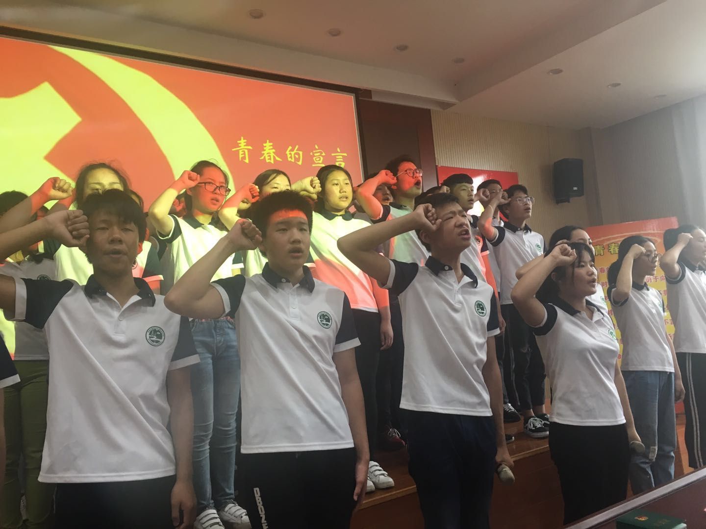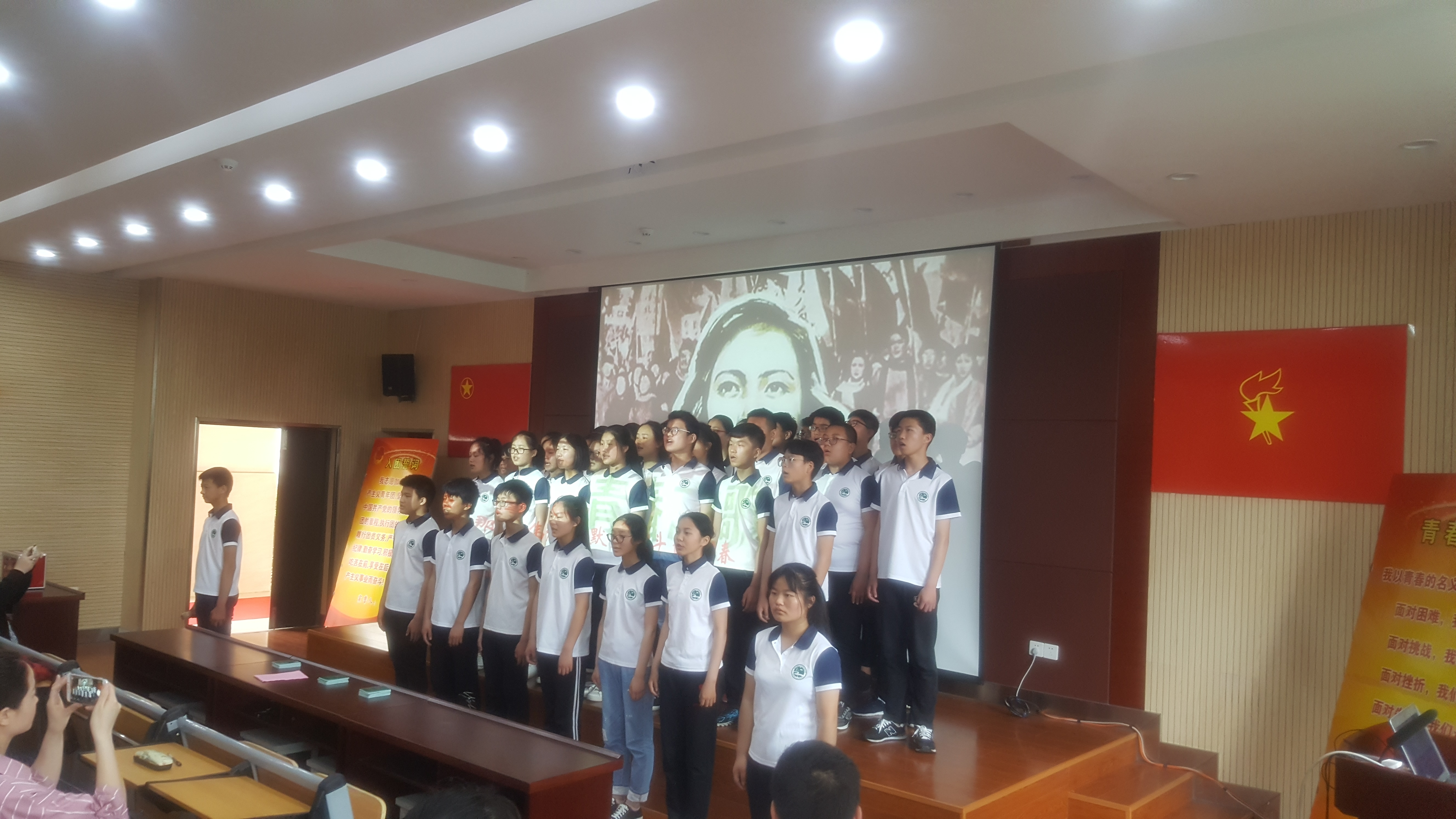 团员宣誓环节,由校领导为团员颁发团员证。“我们是五月的花海,用青春拥抱时代,我们是初升的太阳,用生命点燃未来”,在洪亮的团歌声中,本次入团的团员们面向团旗庄严宣誓,为共产主义事业而奋斗,也为中华之崛起而读书。