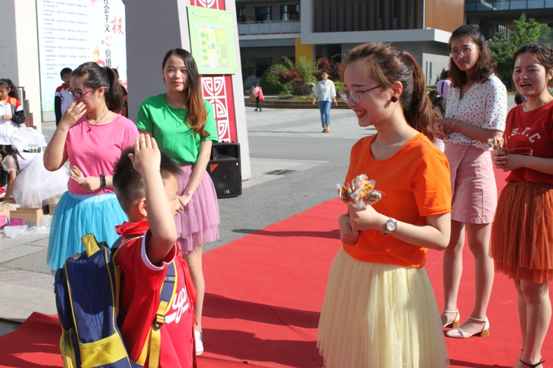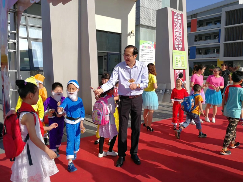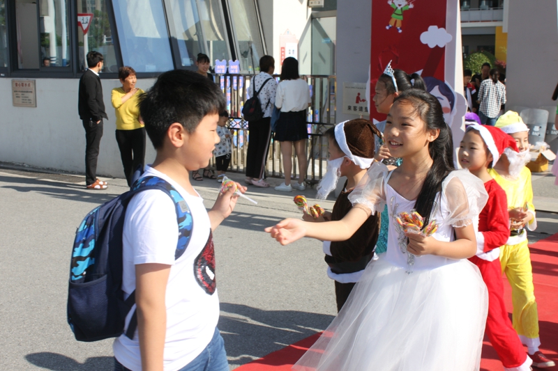 咦,校门怎么变成童话城堡的大门了,白雪公主在发棒棒糖,“白天鹅”亭亭玉立着,小人鱼也来了,还有好多穿着彩裙的漂亮“大姐姐”,校长伯伯也亲自为小朋友送上了甜蜜和祝福!“六一”儿童节,高师附小把校园变成了一座童话里的城堡,让所有“很久很久以前”都走到幸福的时刻!