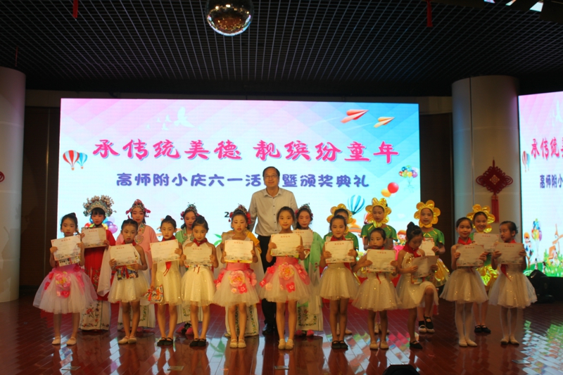 上午,孩子们身着盛装,校园里一片欢声笑语,充满了节日的气氛。一台精彩的文艺汇演正在学校更俗小剧院华丽绽放!本台演出以“承传统美德 靓缤纷童年”为主题,器乐合奏《苏堤漫步》、舞蹈《留守的天空》、经典诵读《声律启蒙》、舞蹈《生命桥》、京歌《梨花颂》、大型歌舞《在阳光下》等充满童真童趣的节目展示了附小娃良好的综合素质和老师们别出心裁的创意。