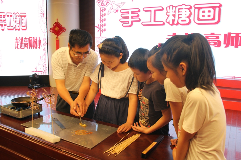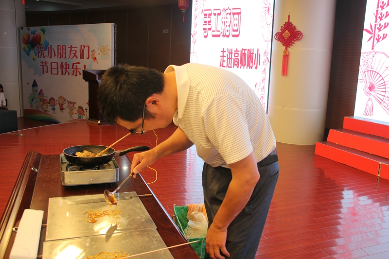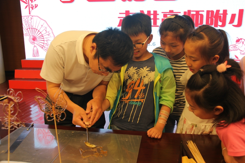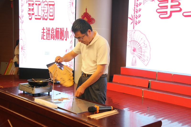 糖画,作为传统的小吃深受人们喜爱,更是逐渐走出国门受到全世界人民的欢迎。小时候一直都盼望着能够吃到甜甜的糖画,是每个人童年的美好回忆。6月8日中午,传统手工艺者糖画传承人周老师走进高师附小,为江海小记者们带来了一堂生动有趣的民间传统手工艺术课。