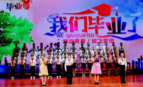 下午,孩子们在报告厅呈上了一场精彩的毕业汇演。在庄严的国歌声中,活动拉开了序幕。随后,同学们精心准备的诗朗诵、歌曲演唱、舞蹈、武术和大合唱等节目一一呈现,表演的每一个同学都在舞台上积极展示着自己的轻松活泼和朝气蓬勃。全场观众都看得津津有味,掌声此起彼伏。在优美的音乐中,大屏幕上映现出一幅幅熟悉的画面,同学们回想起了小学生活的点点滴滴,感受到自己的成长和变化,整个活动充满了温馨与感动。
