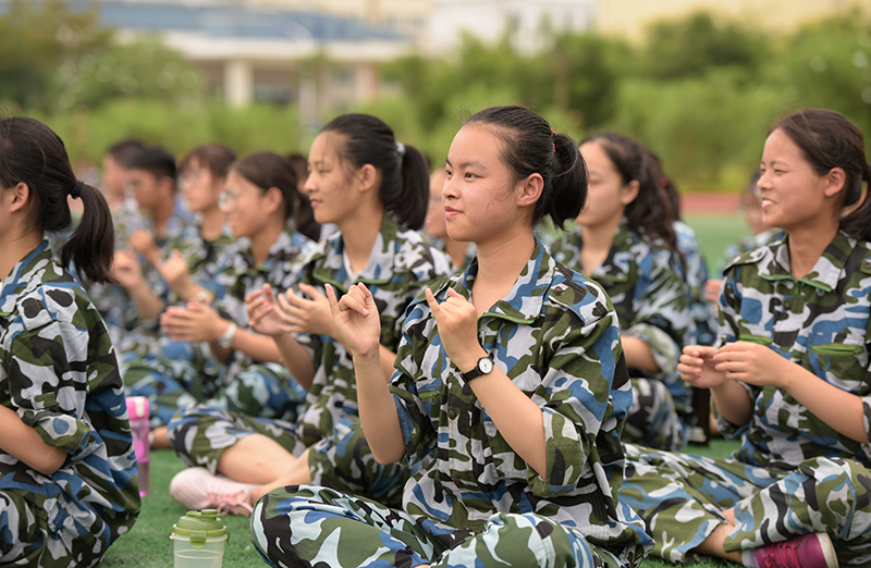 然而,辛苦之余,涌上我们心头的,是感恩,是幸福。我们的教官与我们同甘共苦,他们对每一个动作都要求严格;我们的老师全程陪伴,时刻关注我们的身体状况;我们身边的小伙伴,互相谦让、搞怪卖萌,有乐同享。