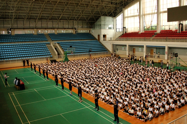 10:30,上午军训结束后,初一学生回教室由各班班主任进行入学教育动员会。结合《中学生守则》和《中学生日常行为规范》内容,班主任对学生进行纪律教育,重点加强爱护公物、保护环境的宣传教育,加强安全教育,努力培养学生的自主管理,培养团队精神等。