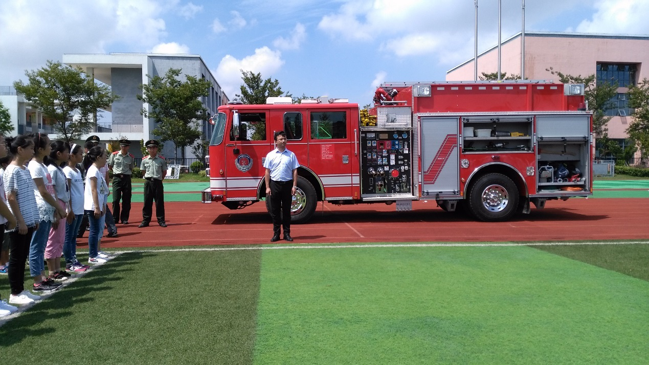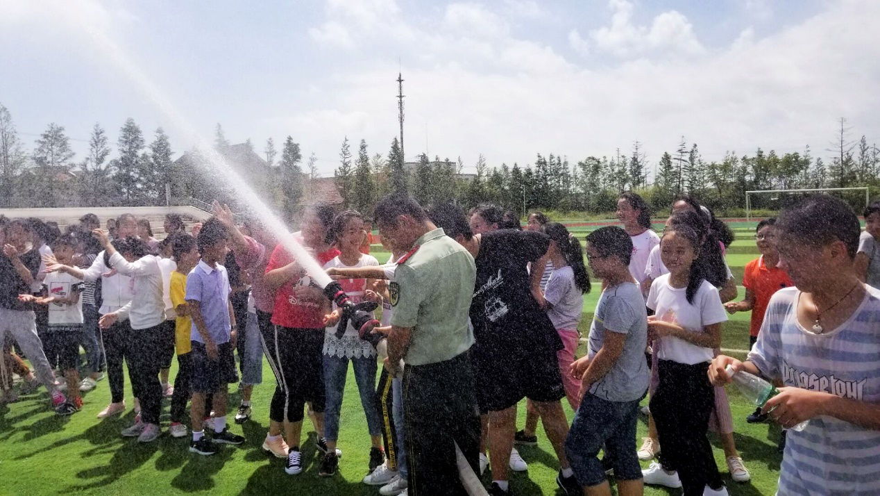 训练之余,教官们利用消防车实时向同学们传授一些基本的消防知识和技能。当清澈的水从管子里喷射而出时,新生感受到烈日下的一丝清凉和惬意。