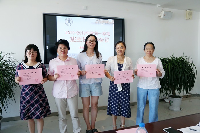 班主任标兵(从左到右:薛永娟、肖德梅、赵飞燕、王先宏、冒素琴)