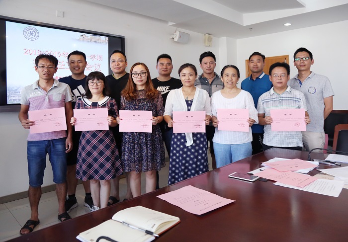 在会议正式开始之前,葛红军副校长宣布了上学期的优秀班级、文明班级、优秀班主任标兵、优秀班主任名单。并为全校新一届的班主任发放聘书。