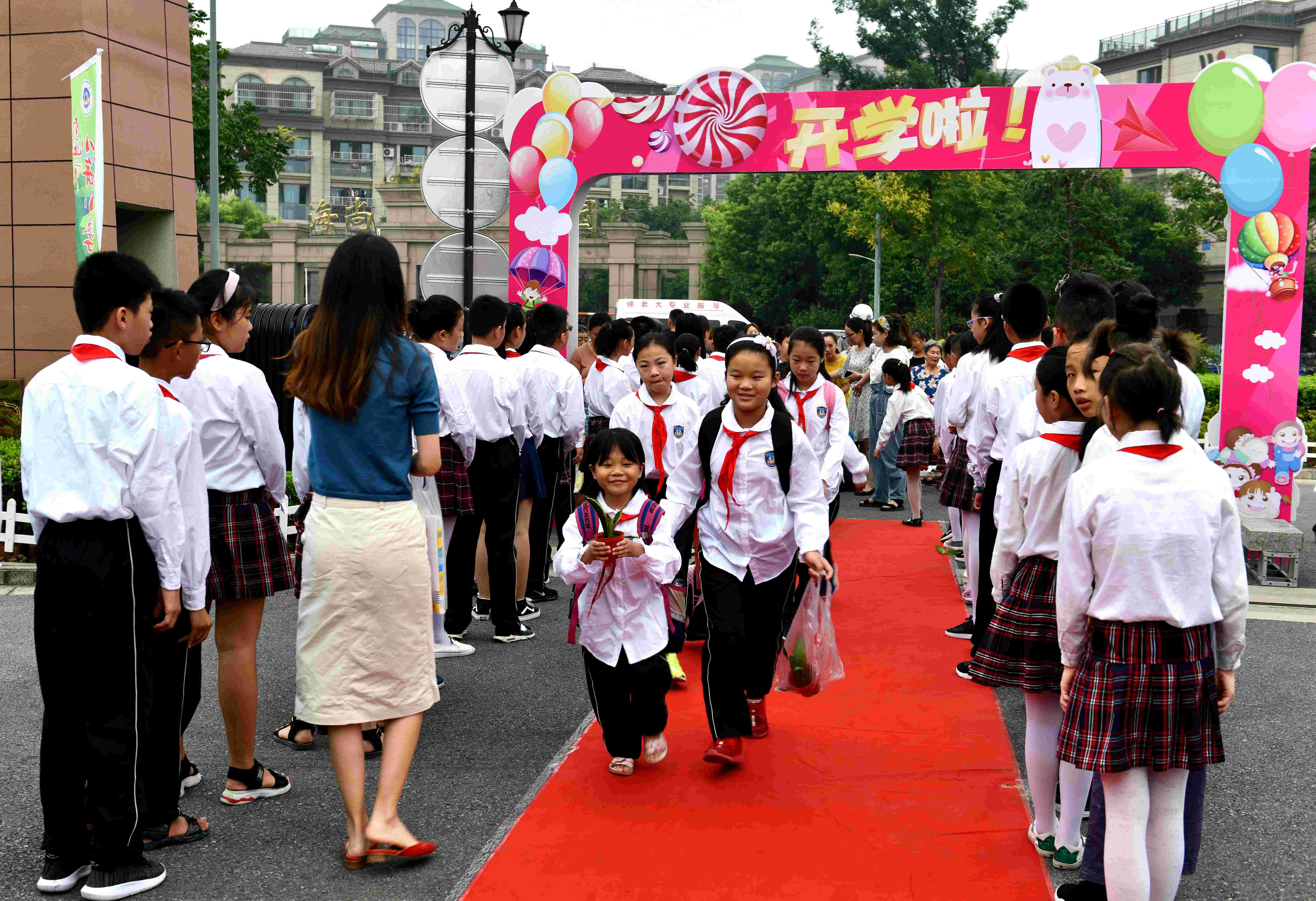 清早,伴着明快的歌声,一年级的班主任早早地在校门口迎接新同学。一张张洋溢灿烂笑容的海小娃喜滋滋地走入校园,由六年级大哥哥大姐姐领进教室,踏上一段新的旅程。