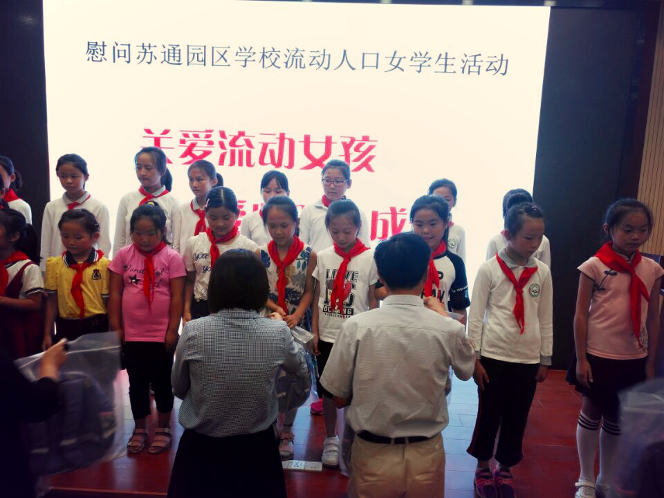 9月4日,晴空万里,南通市卫计委的领导们来到苏通园区实验学校,为我校20名流动人口女学生送来温暖。