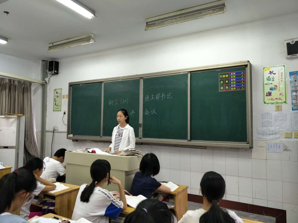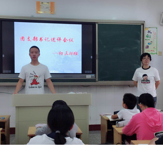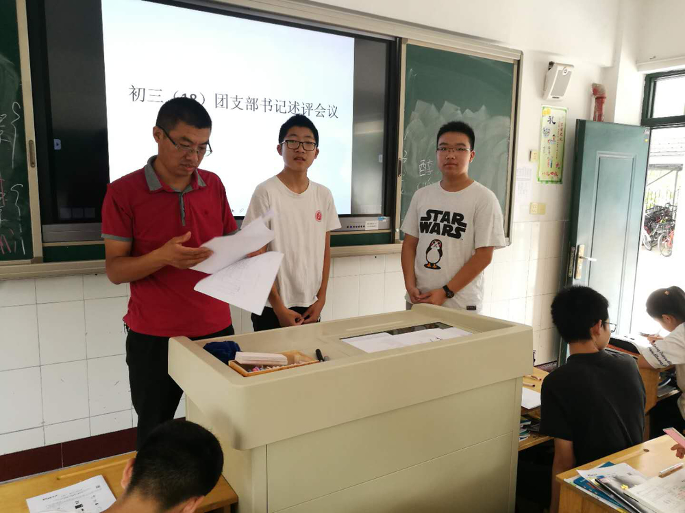 为加强团员干部队伍建设,发挥团支部书记的“标杆”作用,让团支部永葆生机活力。2018年09月11日,我校初二、初三共17个团支部分别在乐英楼底楼和各教室召开全体支部成员会议,在各班团建指导员老师的指导下,我校团支部书记的“双述双评”工作圆满完成。