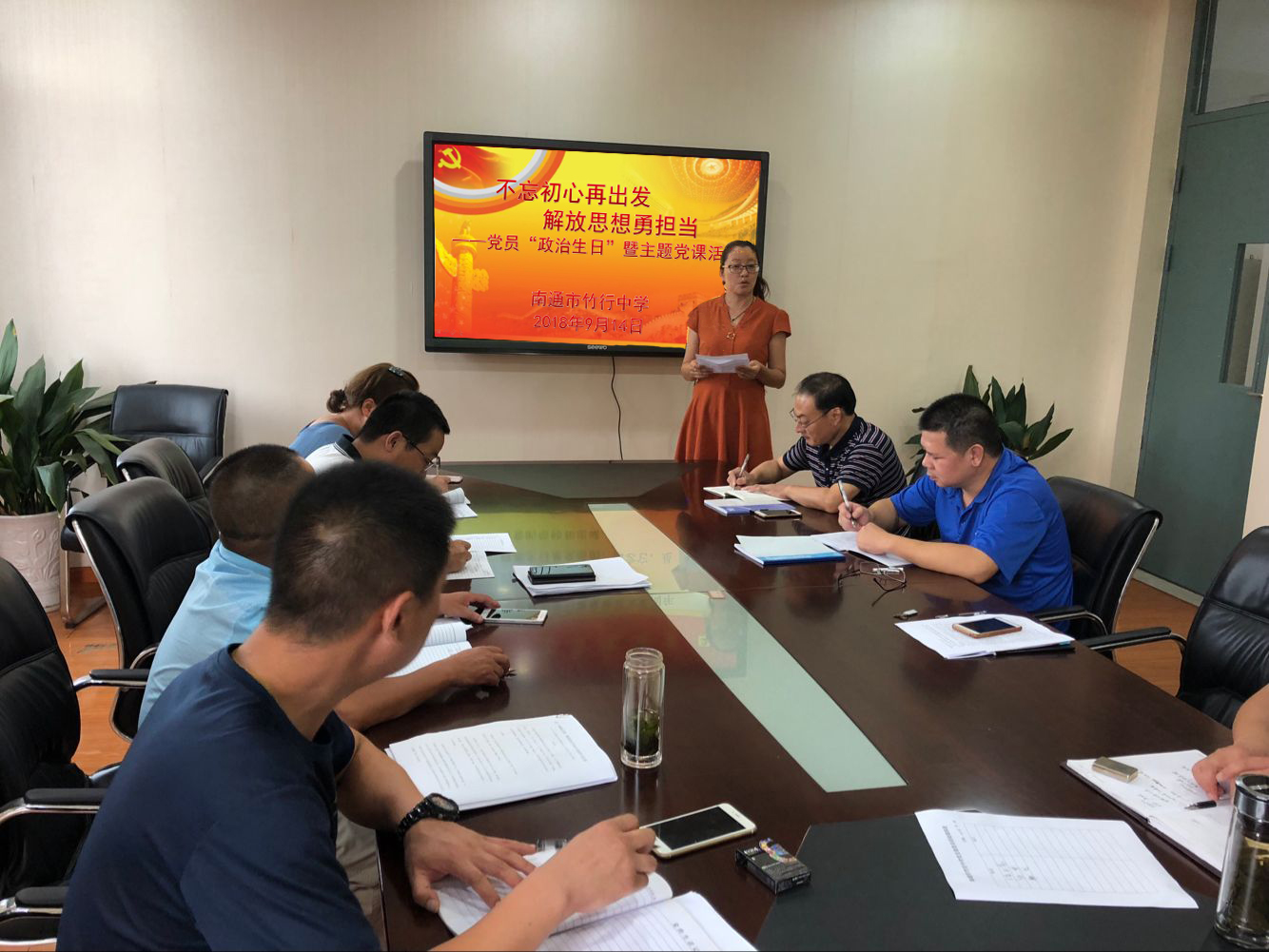 9月14日,在竹行中学举行了一场不同寻常的“生日会”,竹行中学党支部召开“不忘初心再出发,解放思想勇担当”的党员大会,为第三季度入党的党员过“政治生日”,校党支部副书记陆春雷同志开讲了主题党课,校党支部成员张海燕同志主持。