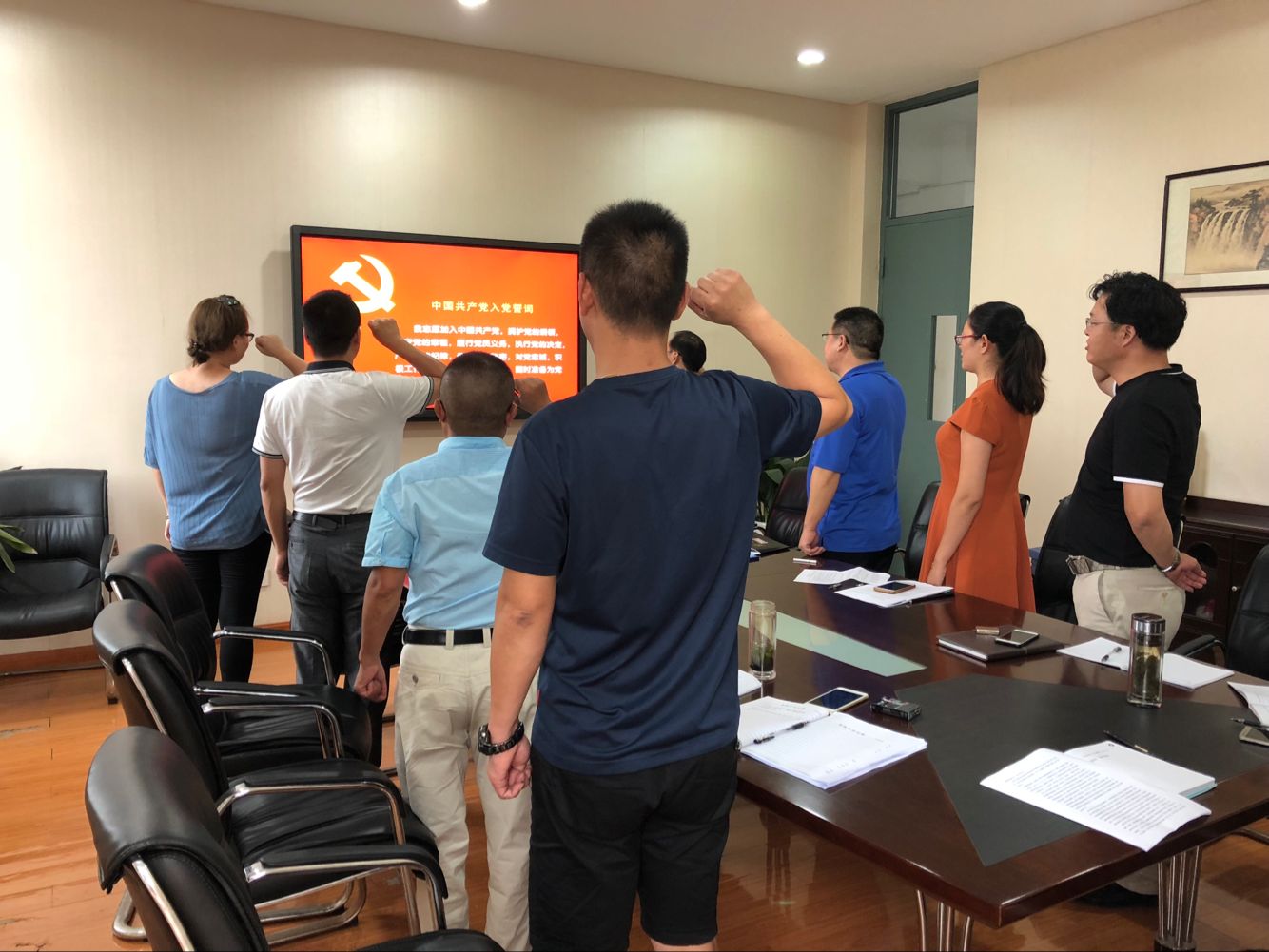 接着由陈卫东同志带着全体党员同志一起重温入党誓词,铿锵的誓词,庄重的仪式,让每一位党员思想上再一次接受“洗礼”。