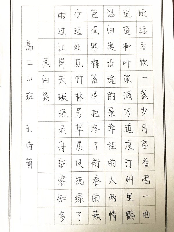 高二1    王诗萌                高二2    花孙雨