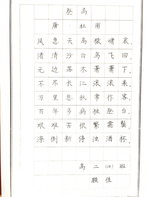 高二12   顾佳                   高二8    蔡陈璐