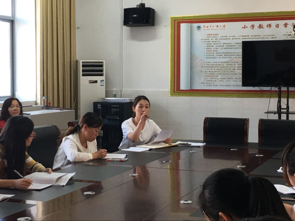 二是对近期工作进行部署。潘主任首先针对前期备课的检查情况,再次强调了备课要求,点明优缺点,鼓励大家做好具有个性化的备课工作。其次,为迎接市里珠心算二三年级的测试,呼吁老师们扎实珠心算教学,练习到位。最后,布置了接下来的六认真检查工作。