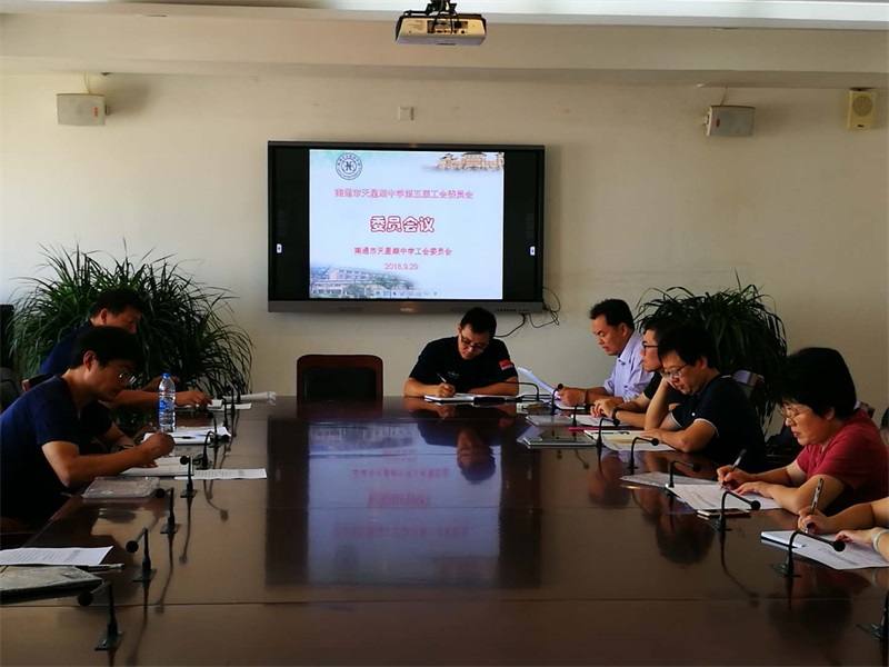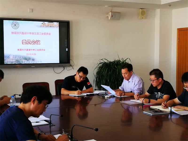 会议宣读了南通市经济技术开发区总工会文件《关于同意南通市天星湖中学第五届工会委员会选举结果的批复》。根据《批复》,校第五届工会委员会由张建锋、王毅南、肖德梅、曹俊飞、赖军、刘邹、宋建平、曹东华等八位同志组成。张建锋任工会主席,肖德梅、王毅南任工会副主席。工会经费审查委员会由沈锋、张明惠、曹建锋三位同志组成,沈锋任主任。女职工委员会由肖德梅、吴丹军、陶育平三位同志组成,肖德梅兼任主任。以上任期五年。