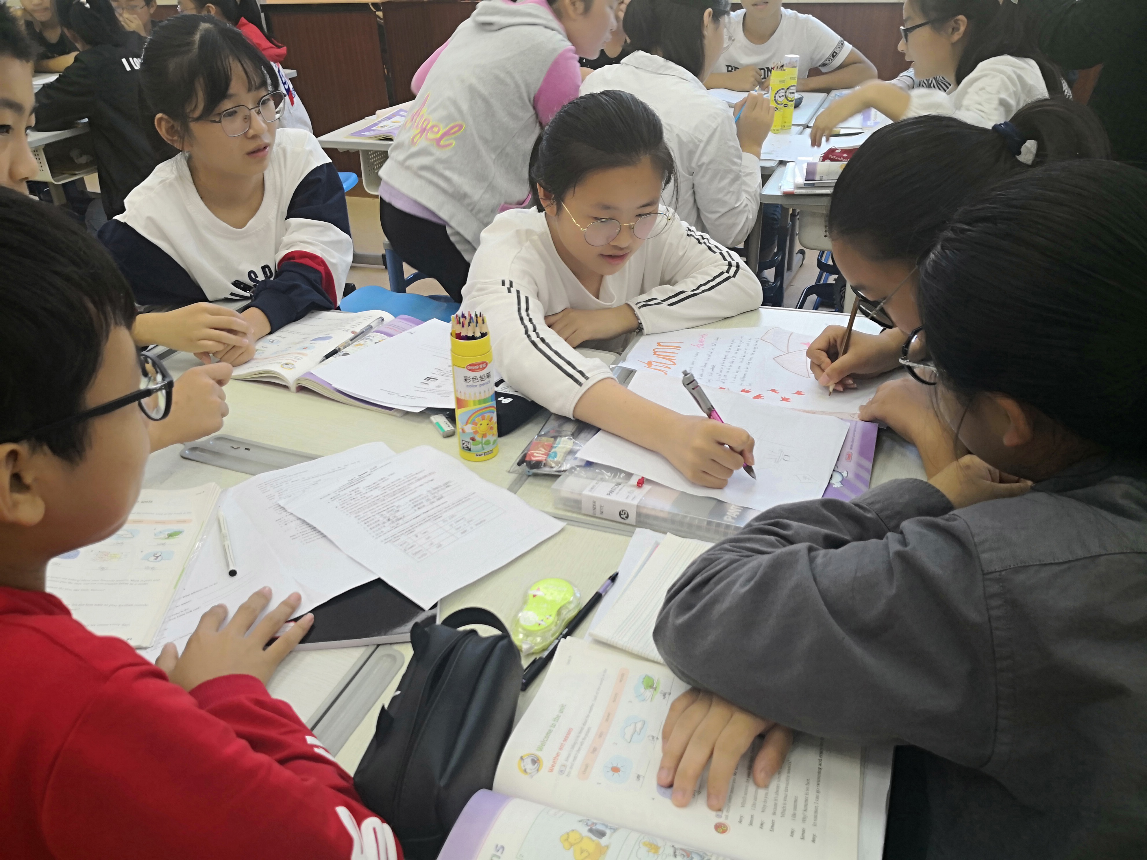 英语课采用了同课异构的形式,同样的课题呈现出不同的精彩。七年级李阳老师和顾建芹老师分别执教了《Welcome to our school》,她们课前到学校各处拍摄照片,用于课堂教学,为学生创设了富有校园气息的情境,学生感到既亲切又有趣。八年级施丹丹老师和杨燕老师分别执教了《Seasons welcome to the unit》,课件精美,设计精巧,小组合作充分,教师激励机制完善,利用动漫、绘画、表演等形式让学生在轻松的氛围中快乐的学习。九年级袁小凤老师执教了一堂语法课,步骤清晰,讲解透彻,练习充分,学生易懂易会。