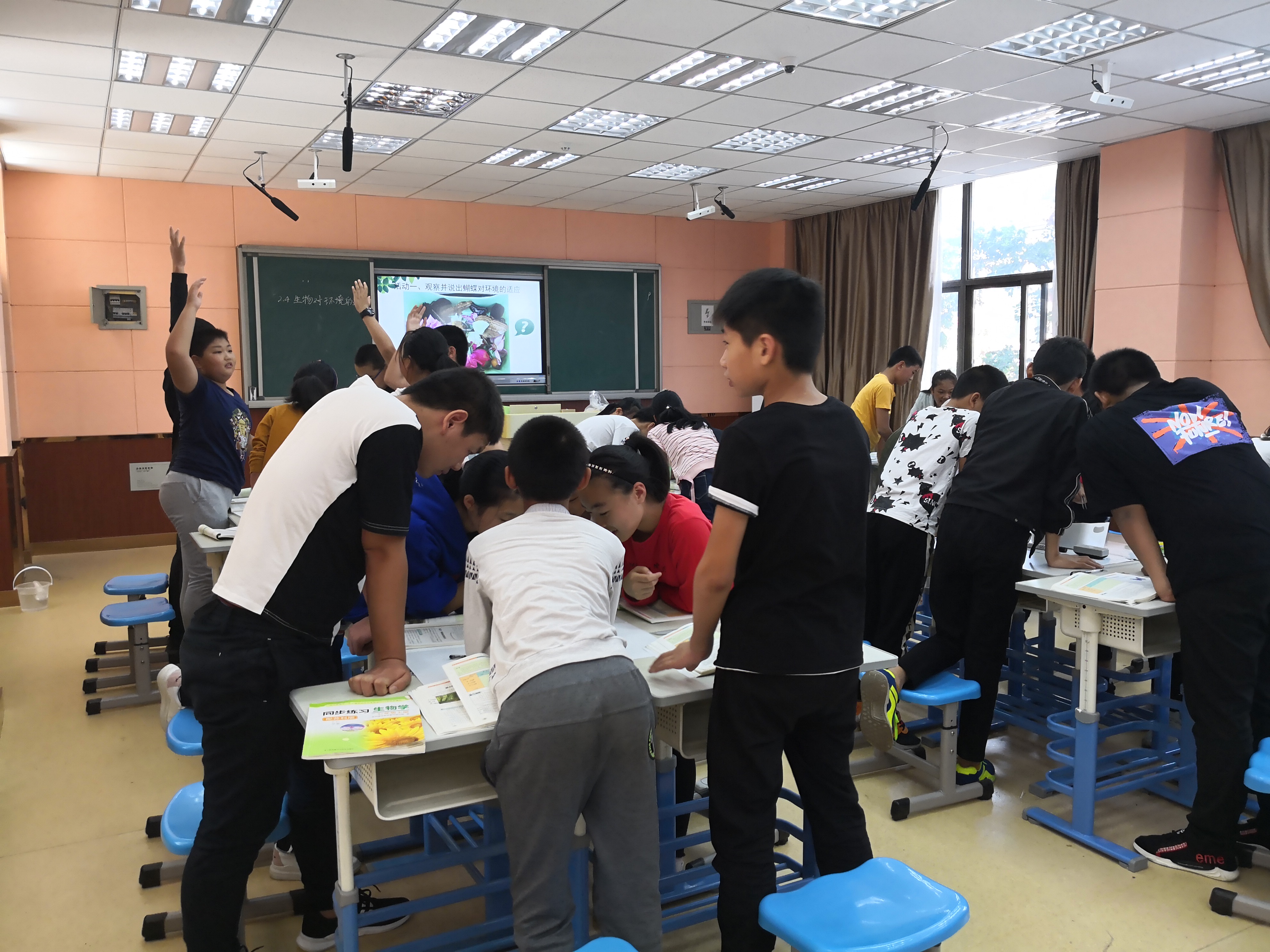 王洁老师的思品课《遵守规则》让孩子们畅所欲言,在观看视频和学生情境剧场的表演中,学生不仅明白了遵守规则的重要性,还能提出建设性意见,拓展了学生思维。俞亚莹老师执教历史课《百家争鸣》,通过小组活动,引导学生讨论交流,课堂气氛活跃,并当堂巩固,及时归纳。曹钰雯老师在七年级执教了一堂生物课《生物对环境的适应》,把荷花和蝴蝶带入课堂,学生倍感兴趣,在合作探究中学会了观察,培养了学习能力,课堂上充满了欢声笑语。
