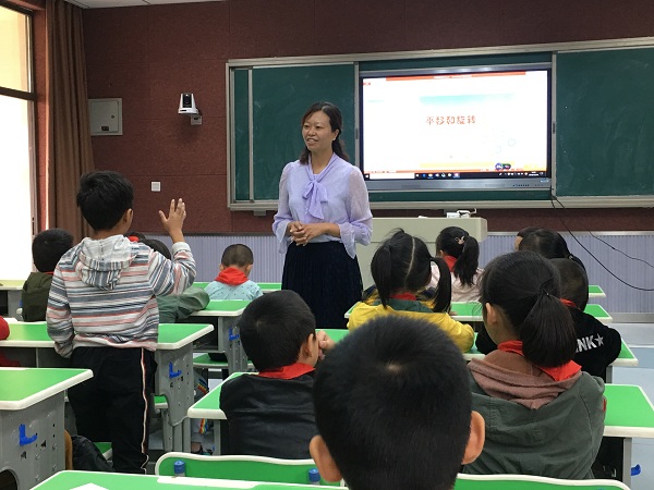 郭海娟老师用那甜美温和的教学风格很快吸引了同学的目光。她执教的《平移与旋转》让在座的老师们无不拍手叫好。