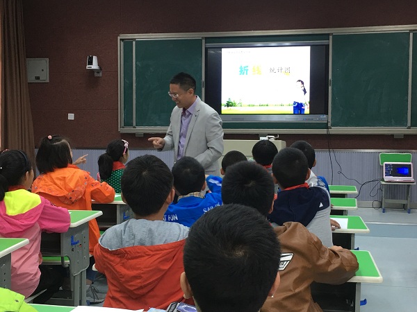 王玉东校长给园区的孩子们执教了一节数学课《单式折线统计图》,王老师的课有深度,凸显了课堂的学科本质;有宽度,体现了课堂的生活视野;有温度,确立了课堂的儿童立场。课堂上,孩子们兴趣浓厚,思维踊跃,兴味盎然。