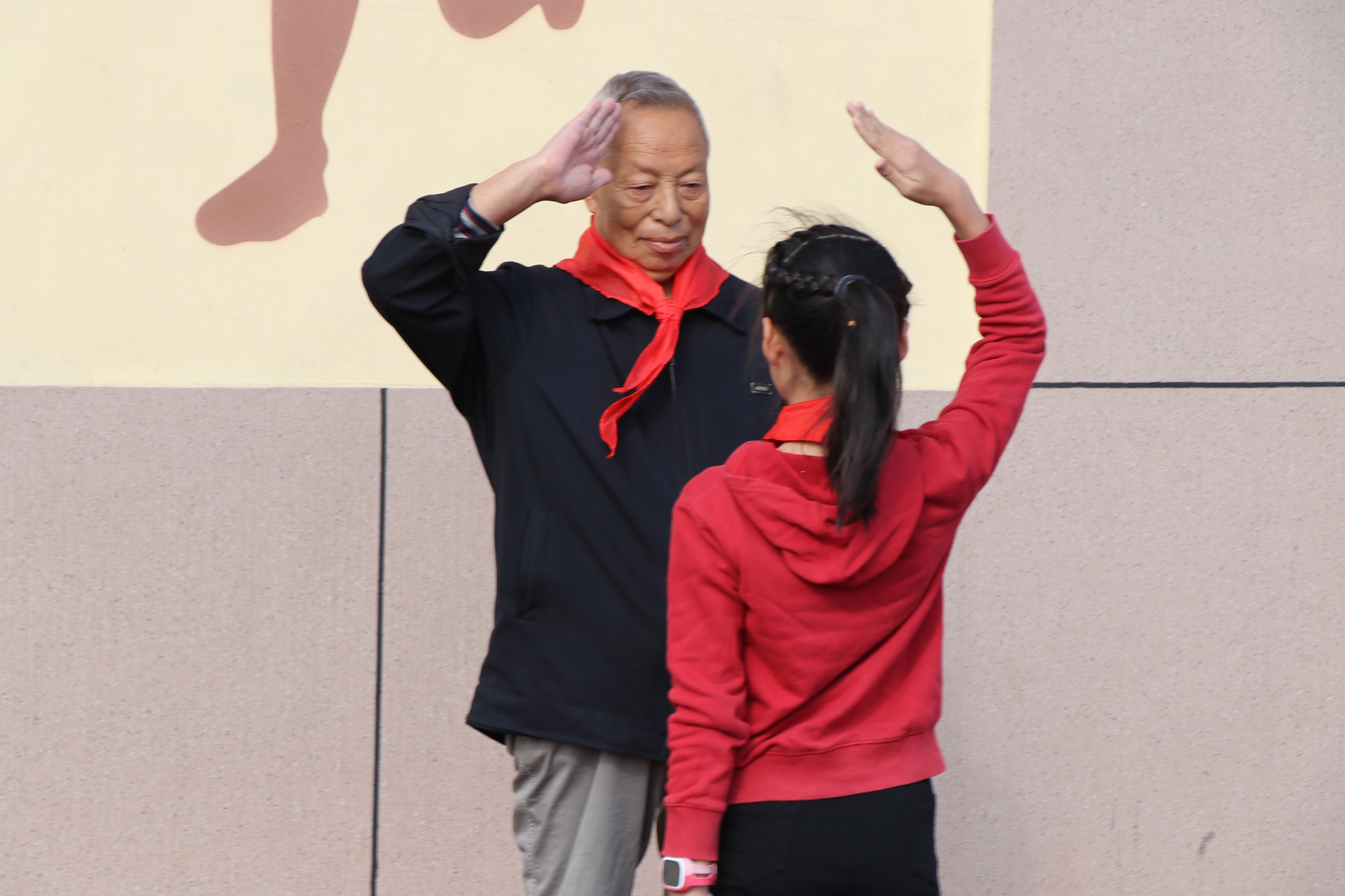 队员们对于黄老师的到来反响热烈,热情与他招呼,俨然是熟悉的家人!少先队员代表还为黄老师系上了鲜艳的红领巾,表示崇高的敬意!