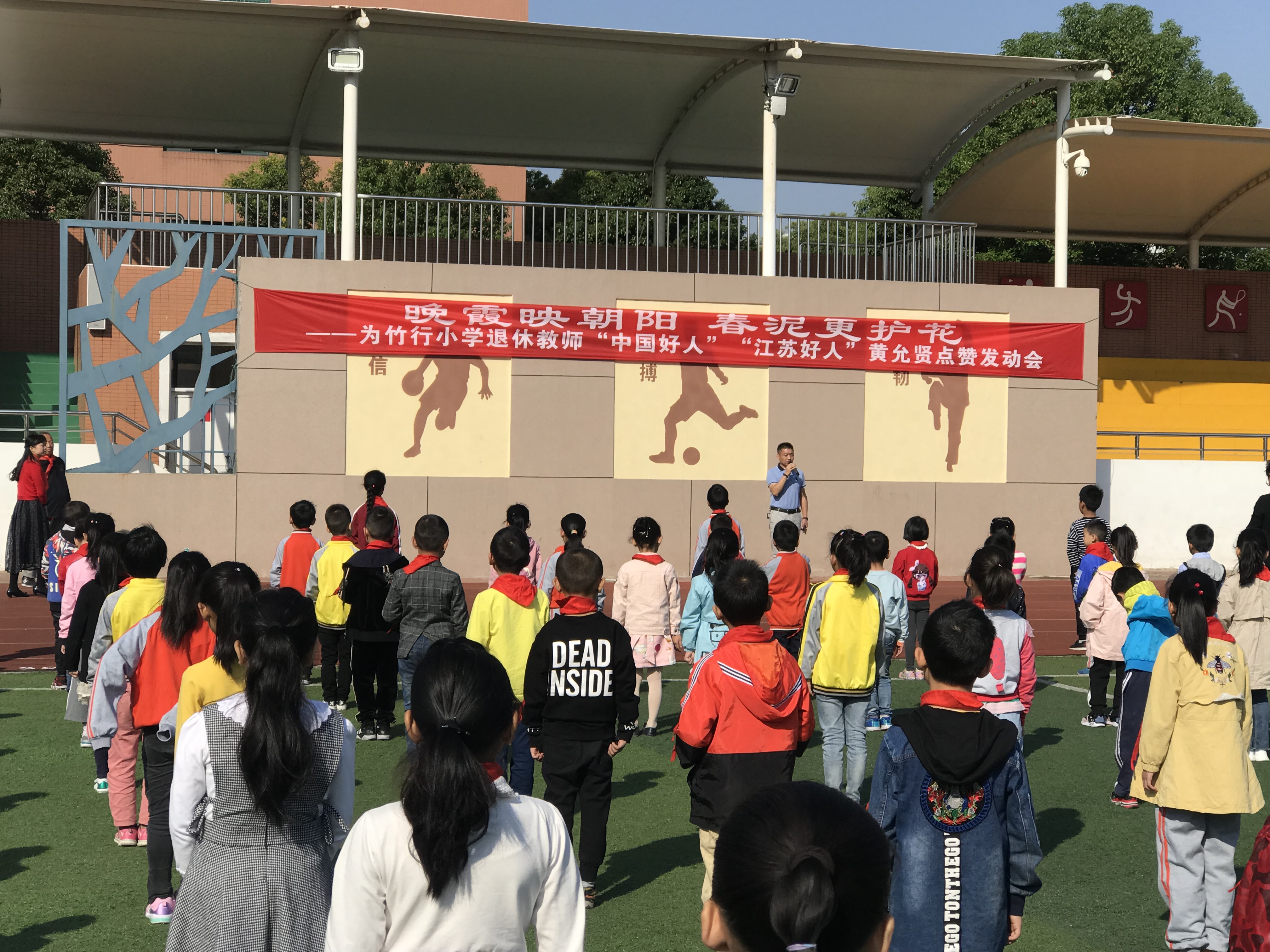 学习中国好人,了解中国好人,点赞中国好人,是每个家庭参与国家精神文明建设应尽的义务。竹行小学的退休教师黄允贤同志是近年来南通开发区涌现出的“情系公益、乐于奉献”的先进典型,黄老师获评“江苏好人”称号,现黄允贤老师已被列为“中国好人”候选人。为积极相应开发区党工委管委会、开发区竹行街道的号召让孩子们向榜样学习,向先锋模范人物学习。10月11日上午,竹小的操场上一场为竹行小学退休教师“中国好人”“江苏好人”黄允贤点赞发动会正在进行着……