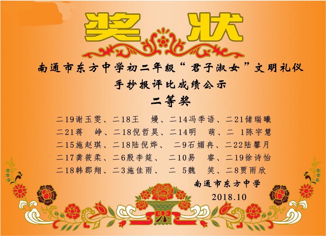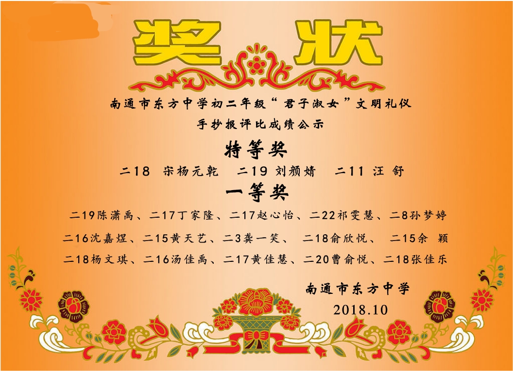 东方中学初二年级“君子淑女”主题礼仪教育系列之手抄报评比成绩公示
