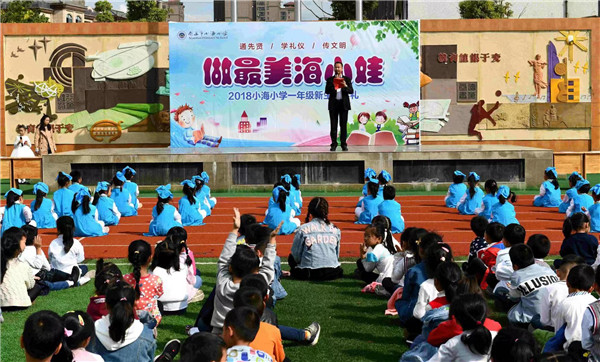 凉爽的秋风携着金色的阳光一路蹁跹而来,伴随着这抹深秋的金色,10月19日下午,小海小学迎来了期盼已久的“做最美海小娃·2018级新生入学礼”。一年级581名学生家长也应邀来到现场,共同见证了孩子们这一难忘的时刻。