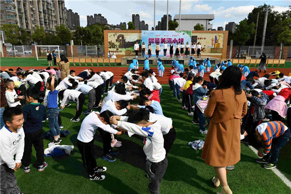 “人生聪明识字始”。写字识字是学习文化的第一步。在老师和优秀学生的带领下,小朋友们书写了人生中极具意义的一个“人”字。让小朋友们明白做人就要像“人”字一样,既要锐意进取,又要脚踏实地,既需要朋友,需要集体,又要相互扶持,取长补短。
