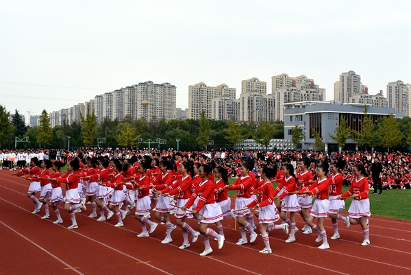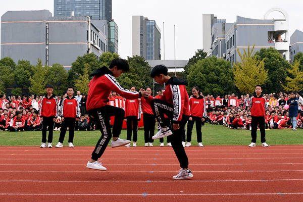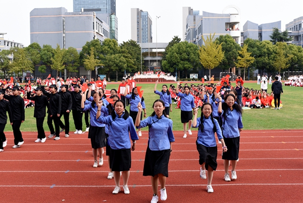 全校66个班级的运动员代表队,带着各自炫酷的表演装备,依次精彩闪亮地登场。他们用饱满的精神彰显青春的朝气,用铿锵有力的步伐传递必胜的信念,更是用无限的创意构筑了一个个异彩纷呈的青春梦想。看,有充满青春张力的口号与条幅,有铿锵有力的口号,还有动感活力的舞蹈,灵活多样的表演队形变换……在场的师生赞声连连、掌声雷鸣,经久不息。