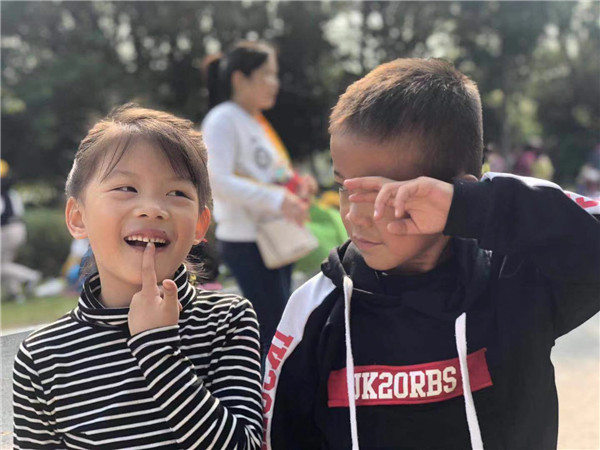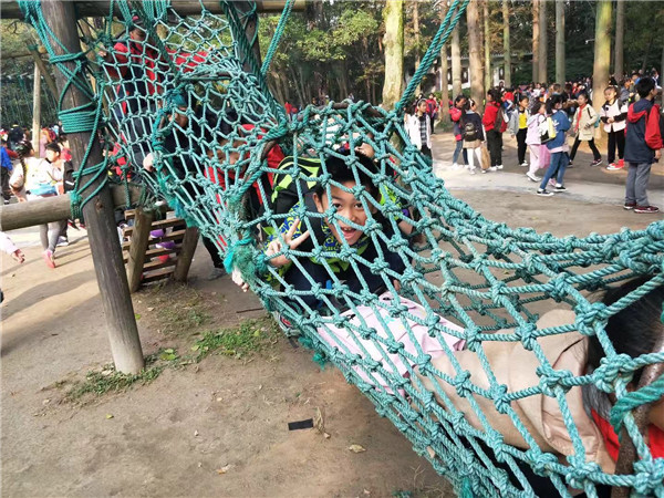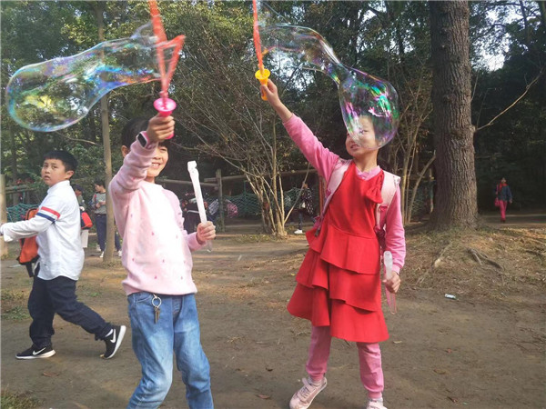 充满童趣的花卉造型前,孩子们合影留念;勇者之路上,他们不畏艰险,快乐挑战。你瞧,园内种类繁多的名贵树种,深深吸引了娃娃们的目光,小家伙们三三两两地拾起各种落叶,还美美地聊着,怎么做出别致的树叶作品呢!