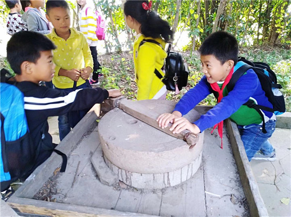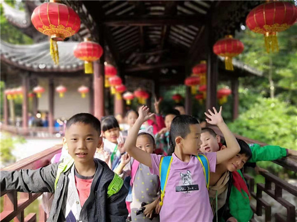 啬园可真大呀,啬园可真美呀,小朋友们一边发出阵阵赞叹,一边闪着双双大眼好奇地打量着周围的一切。在如梦如幻的绿色长廊里,他们有的专心致志地听老师讲着关于啬园的故事;有的和小伙伴拿着放大镜蹲在草地里观察昆虫,化身为一个个小小“法布尔”;还有的在草地上尽情奔跑,和着桂花的甜香,落叶片片洒下,装扮飘荡着的衣裙,宛如置身童话世界。