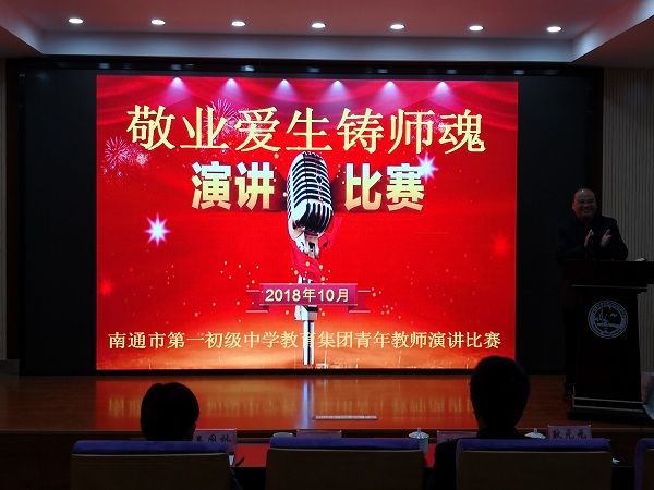 为提高青年教师的综合素质,弘扬高尚的师德师风,激励青年教师做有思想、有追求、有力量的教育工作者,南通市第一初级中学教育集团开展青年教师“敬业爱生铸师魂”演讲比赛,该活动于10月31日下午在我校多功能厅举行。