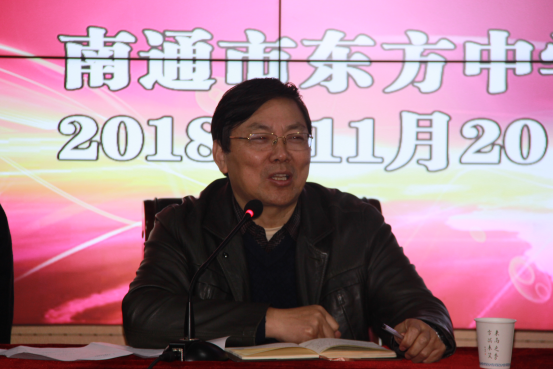 随后,金局长讲话,他向全体与会者介绍了“分层走班”教学的历史渊源、时代背景、区域实践情况,以及学案设计要义、小组合作与“分层走班”教学的内在关系等。金局长的讲话高屋建瓴,条分缕析,以系统的阐述、生动的表达,给与会者带来诸多启发。他充分肯定了我校“因层施教”课堂教学改革成效,认为在戴校长的带领下,东方中学师生具有改革的勇气和智慧,教学改革是真抓实干,不搞花架子,并且取得可喜成效。同时,金局长也从立德树人的高度,对我校提出了深化改革的建议。