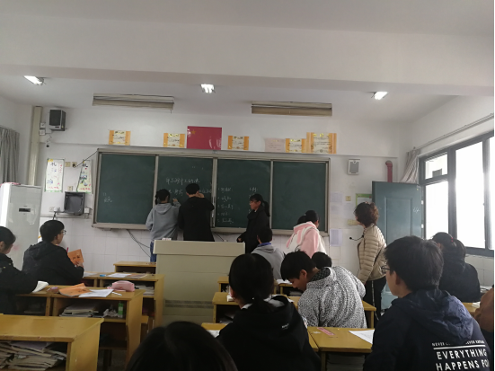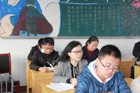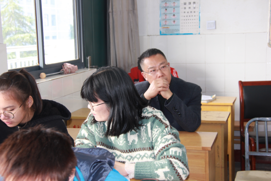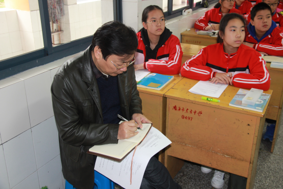一到校,金局长就立即进入课堂,随机听取了一节初三B层语文课和一节初二C+层数学课。课堂上,我校沈怡、杨丹丹老师紧扣“限时讲授、合作学习、踊跃展示”12字方针,因层施教,努力给学生提供适合的课堂。