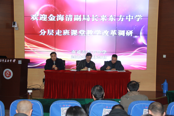 11月20日,南通市教育局副局长金海清、南通市教科院课改负责人、特级教师符永平一行,专程来到我校调研分层走班课堂教学改革实施情况。