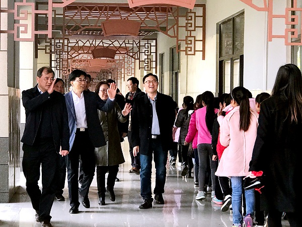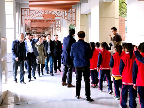 2018 年11月29日,苏通园区管委会张灵副书记陪同南通市教育局葛苏强副局长、姜学勤副局长视察园区实验学校,随同视察的还有园区社会事业管理局夏云光副局长和南通市相关学校的负责同志。