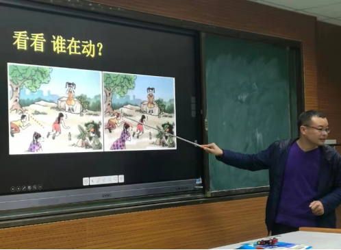 课前,吴建红老师精心准备了自制教具——能吸在黑板上不同颜色的小车、五彩缤纷的小风车等,课上,学生小组合作,自己设计实验方案,学生学习的积极性得到了充分调动。