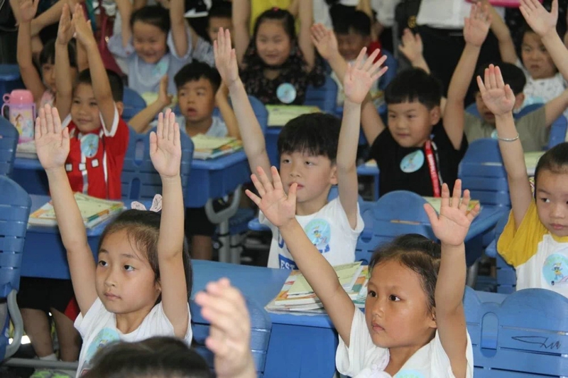 九点的温情里,开启了我们小学生涯快乐的第一课。新的老师好和蔼,新的同学很友爱,新的教室很漂亮,就连新的课本,嗯,都好香呢~~~老师带我们参观了美丽的校园,认识了厕所,教我们接水,跟我们做游戏,小学的课堂很有趣,我愿意,以最生动美好的姿态投入到成长的美好期许中!