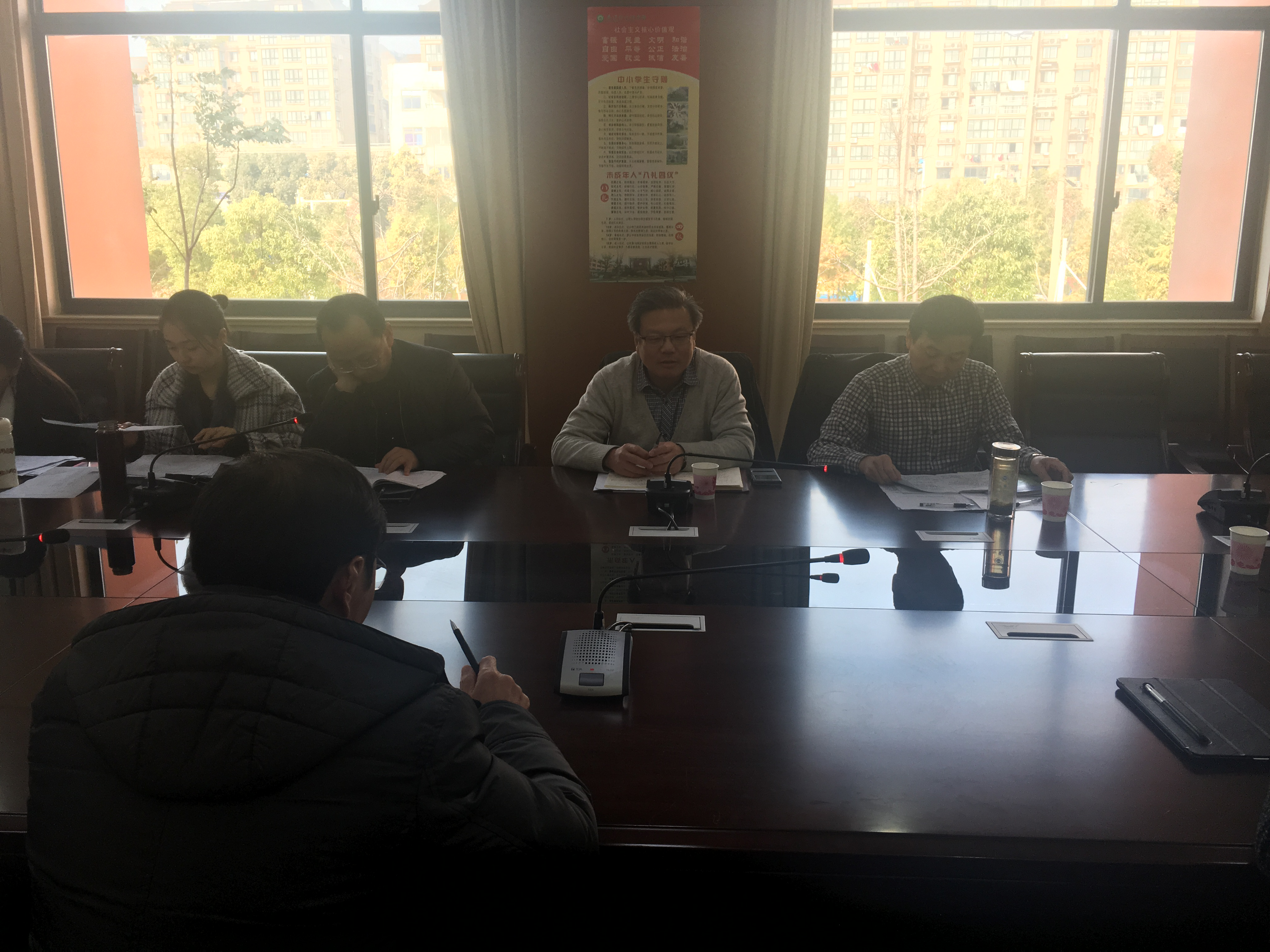 下午,专家领导们认真检查了所有老师的备课笔记、作业批改情况等。然后与我校所有行政人员,开展检查情况反馈会。本次反馈会由开发区教师发展中心杨苏主任主持,首先竹行中学沈明明副校长向各位专家领导们介绍了竹行中学的办学情况和目前的优势,他说之后我们将继续秉承竹行中学“竹之节,行致远”的办学理念,不断优化校园管理,提高办学品质。