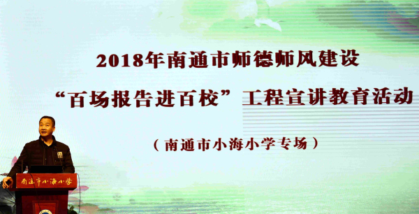 新时代的教育对教师队伍建设提出了新要求,为了适应新要求培养新时代的高素质教师队伍,2018年南通市师德师风建设“百场报告进百校”工程宣讲教育活动在南通市小海小学大礼堂举行,全区各校派教师代表聆听了本次报告。
